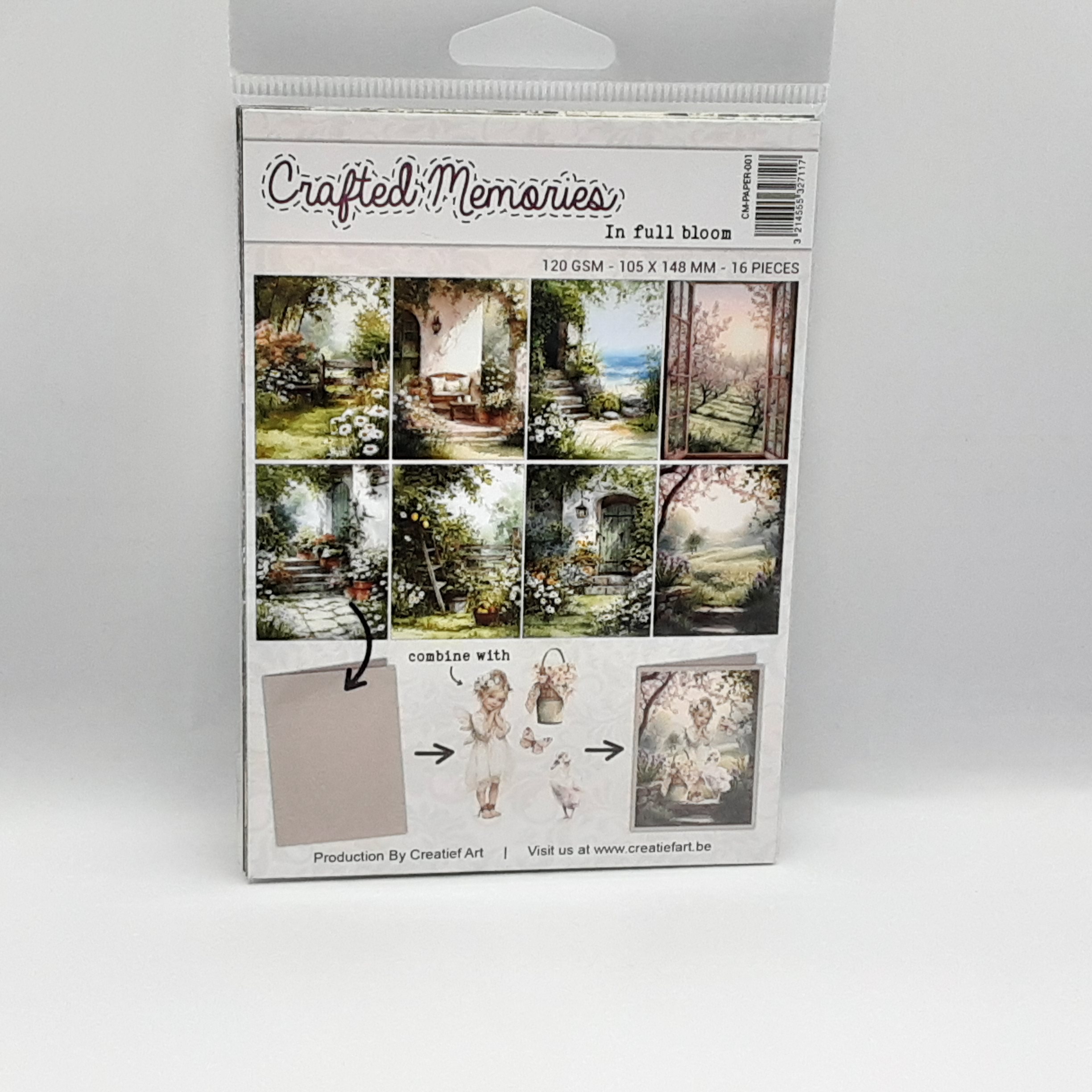 2x 8 designs achtergrond vellen op A6 formaat, met schitterende voorjaars landschapjes
