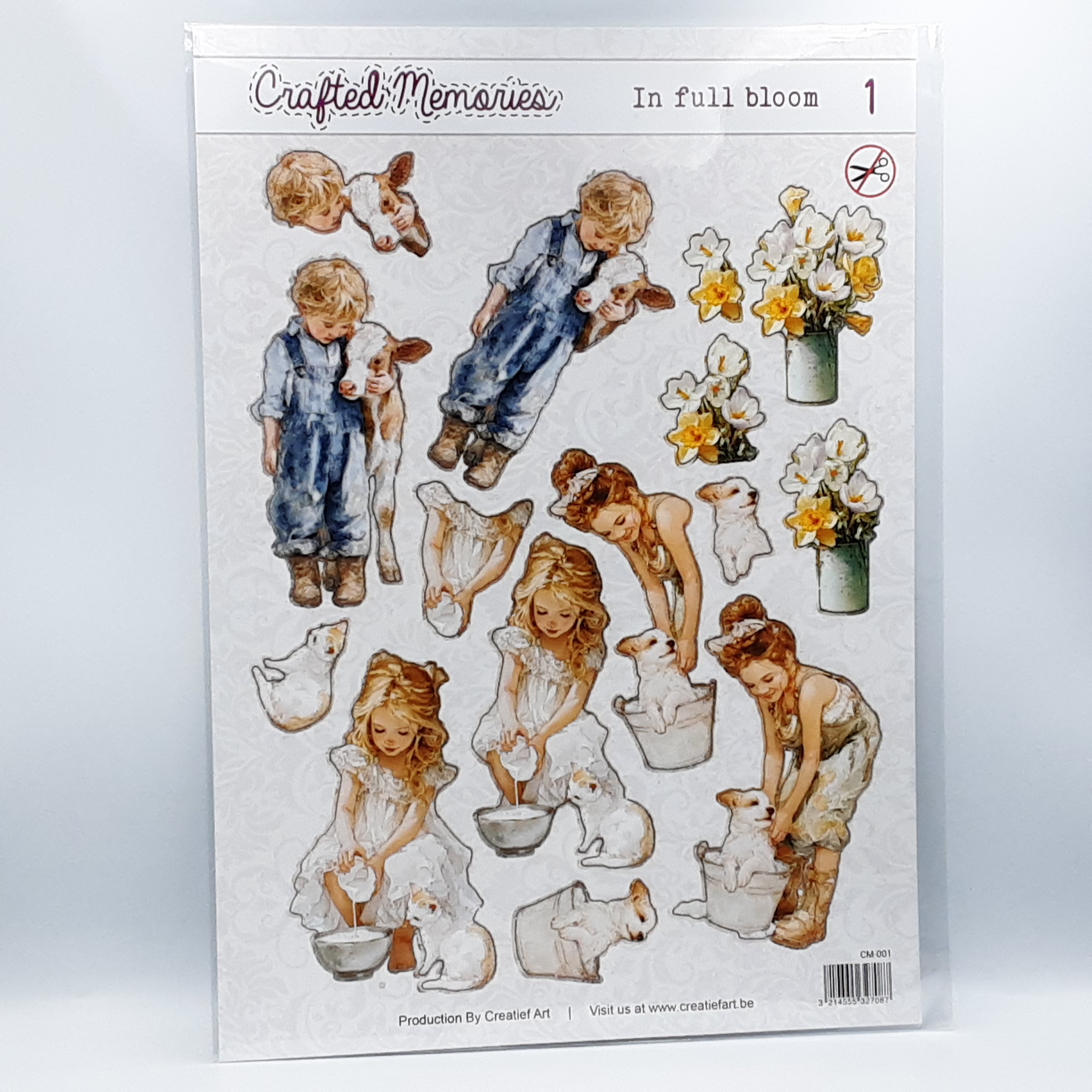 Pakketje met 46 voorgestanste plaatjes, lieve jongens en meisjes en schattige jonge beestjes , ook erg leuk voor communie kaartjes
