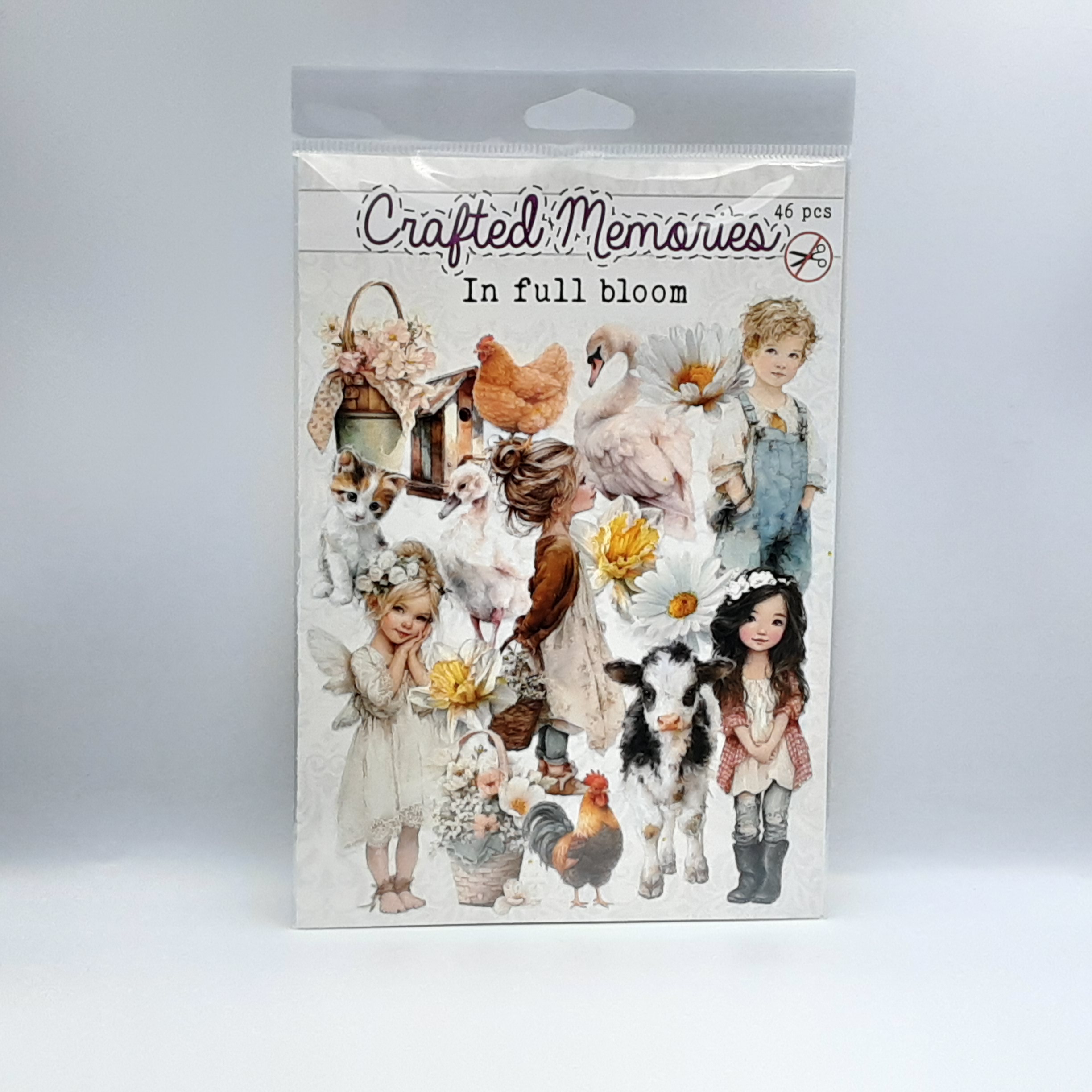 Boek met schitterende voorjaars landschappen en liefelijke knipplaatjes van jongens , meisjes , beestjes en accessoires.